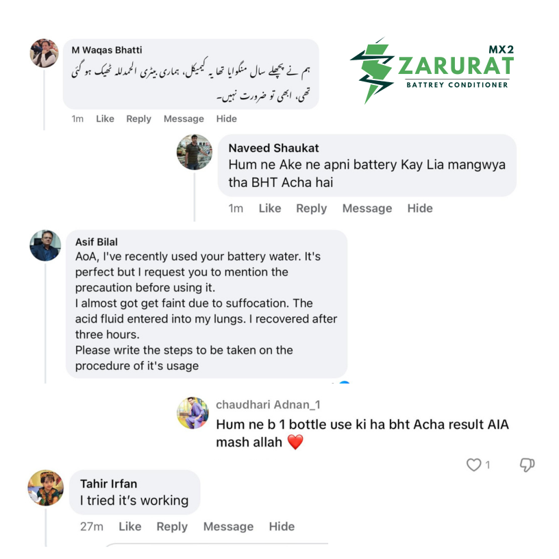 ہمارا جدید فارمولہ خاص طور پر کار کی بیٹریوں کے لیے بھی تیار کیا گیا ہے، اگر آپ گاڑی کے مالک ہیں جن کو صبح کے وقت گاڑی سٹارٹ نہ ہونے کے مسائل کا سامنا ہے ضرورت⚡️ آپ کے لیے بہترین حل ہے